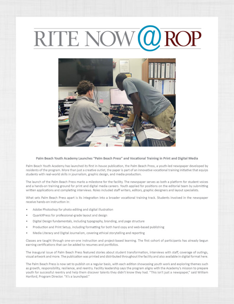 Palm Beach Youth Academy offers a safe, supportive environment that promotes physical, emotional, and psychological well-being, while preparing youth for reintegration through a focus on accountability, resilience, and personal growth.
